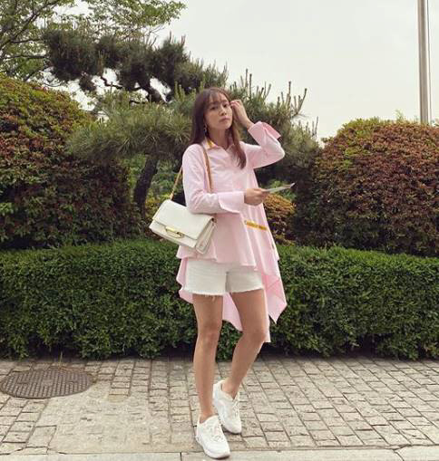 상의,하의,신발까지 핑크색 계열로 맞춘 모습이네요.
