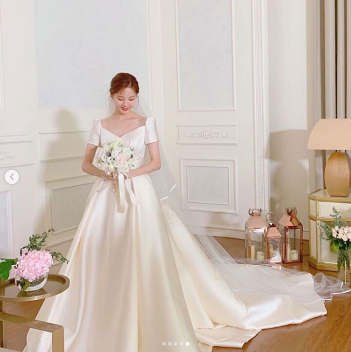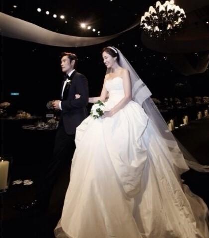 본식에서 입었던 드레스는 마르케사 브랜드의 드레스 였습니다. 그당시 약 5000만원 정도 했다고 알려져 있어요.