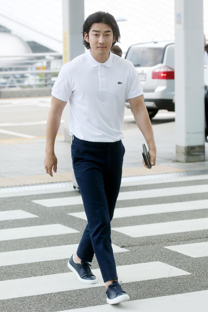 남친짤의 대명사 이제훈님의 네이비색 카라티 코디입니다.