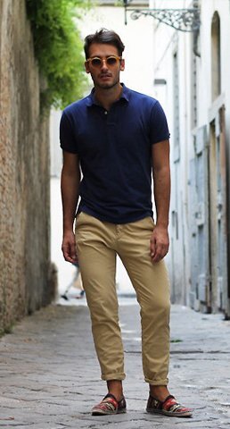 네이비색은 베이지색하의와도 잘 어울리고 화이트와도 잘 어울려