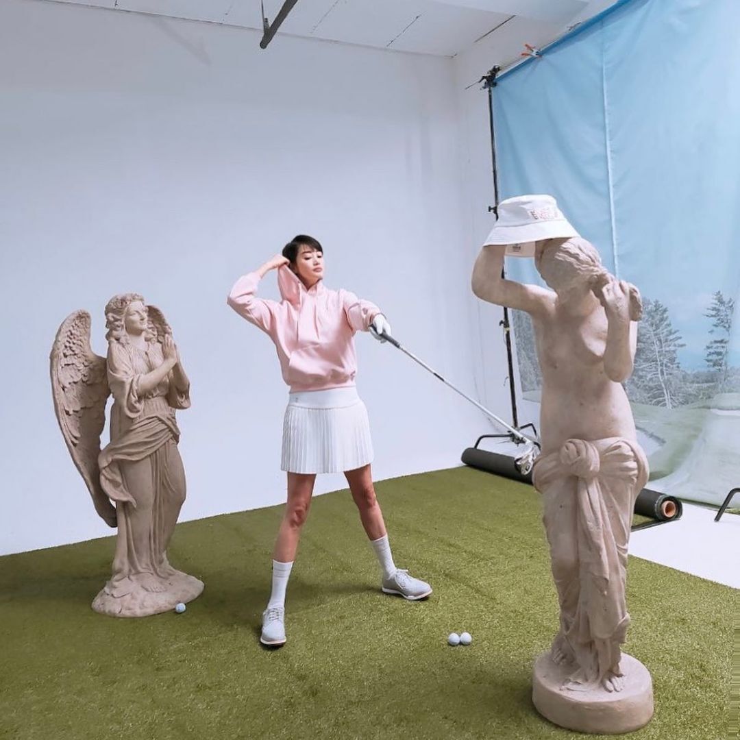 아이유씨도 테니스스커트 찰떡같아요. 뭔가 더 사랑스러운 느낌을 내는 옷 같아요.!