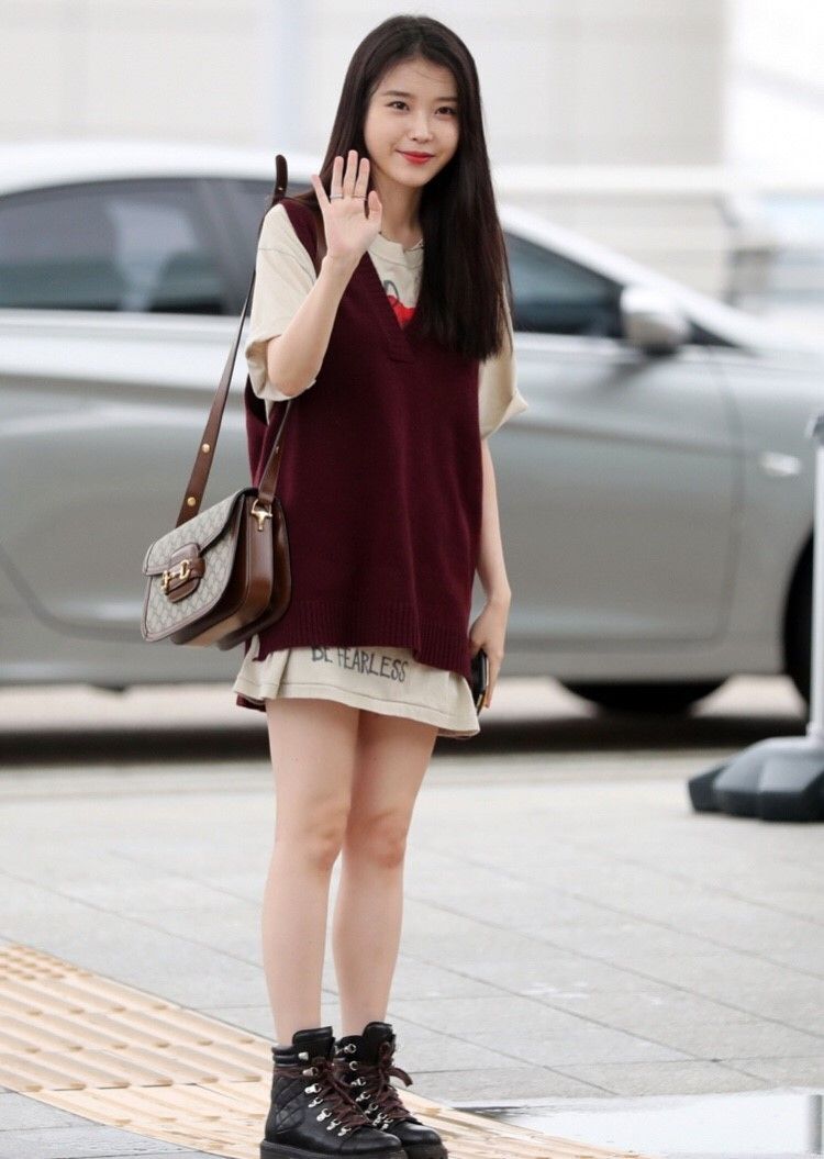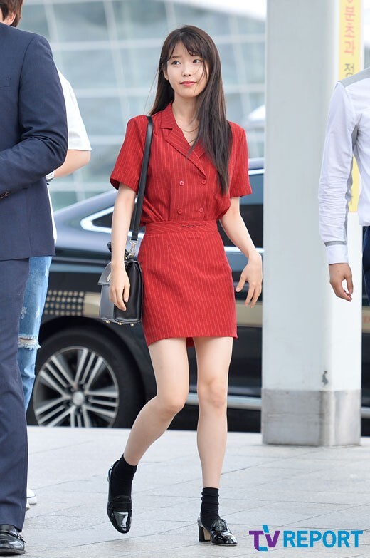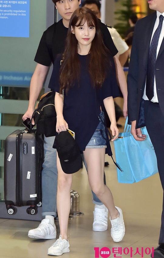 아이유의 청치마 코디 패션이에요.