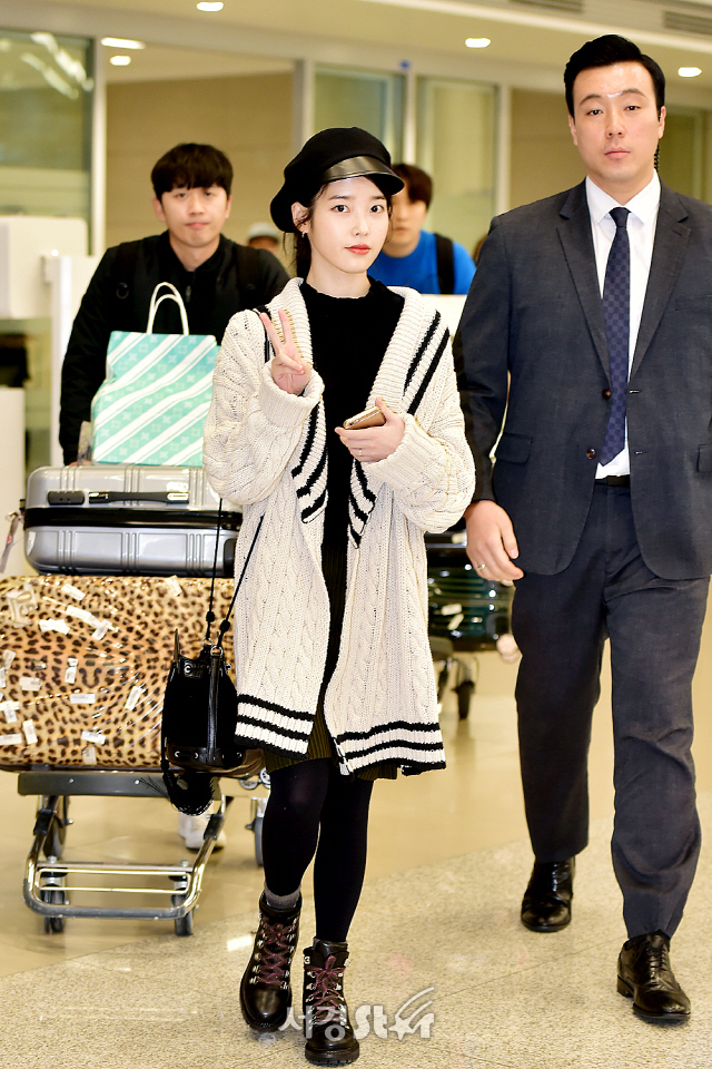 아이유는 베레모나 비니나 모자등을 잘 착용하는 모습이네요.