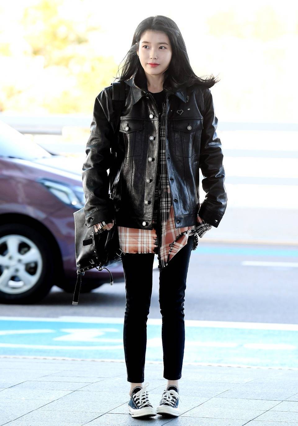 시크한 가죽자켓도 아이유가 입으니 뭔가 귀여운 것 같기도 하네요~?