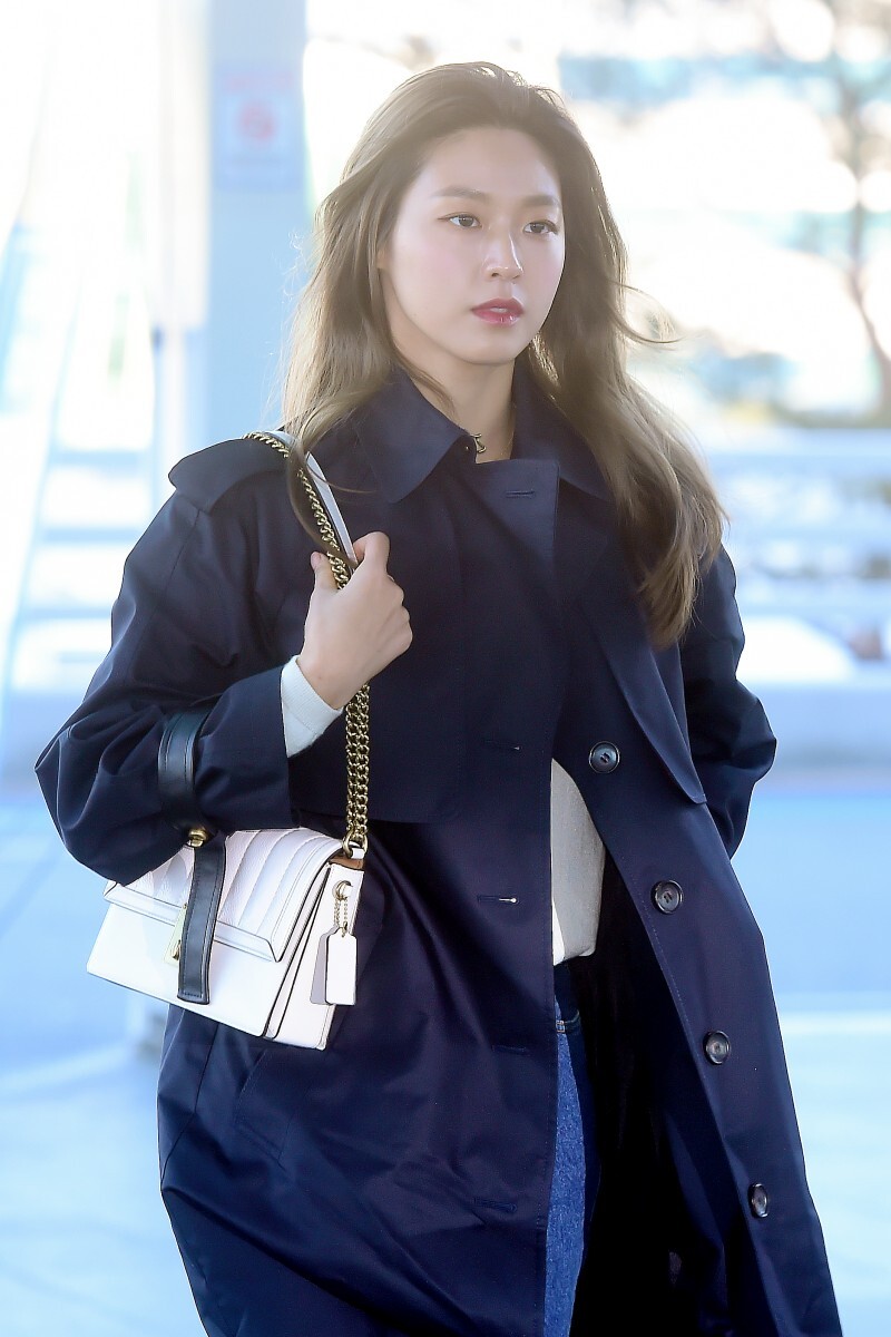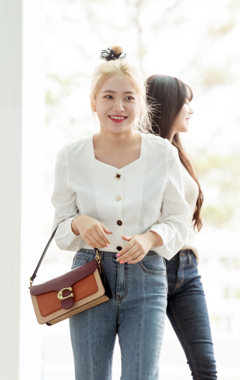 코치 미니 버로우백을 착용한 손나은씨와 코치 머서 사첼30을 착용한 수영입니다.