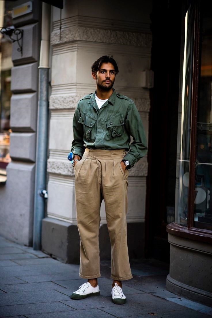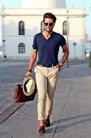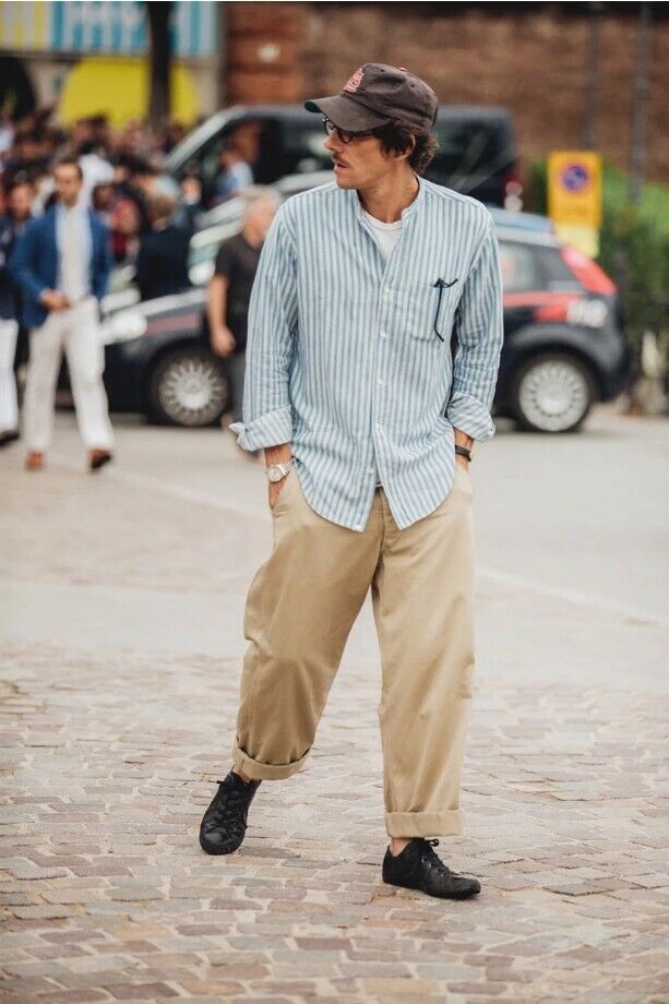베이지 팬츠는 하늘색 셔츠랑도 찰떡으로 어울리는 것 같아요.