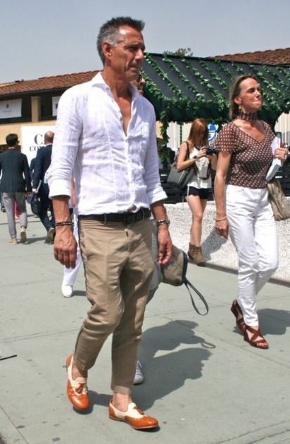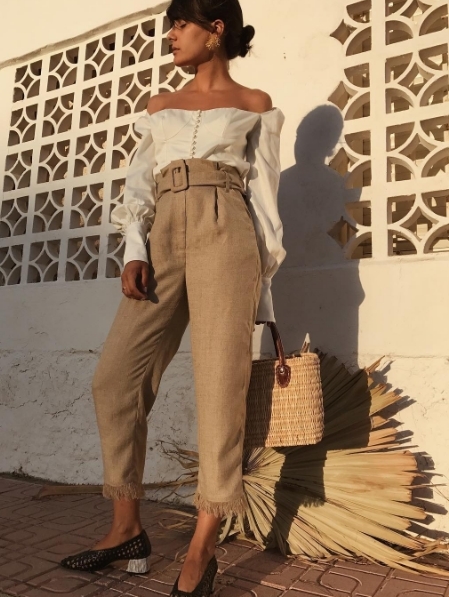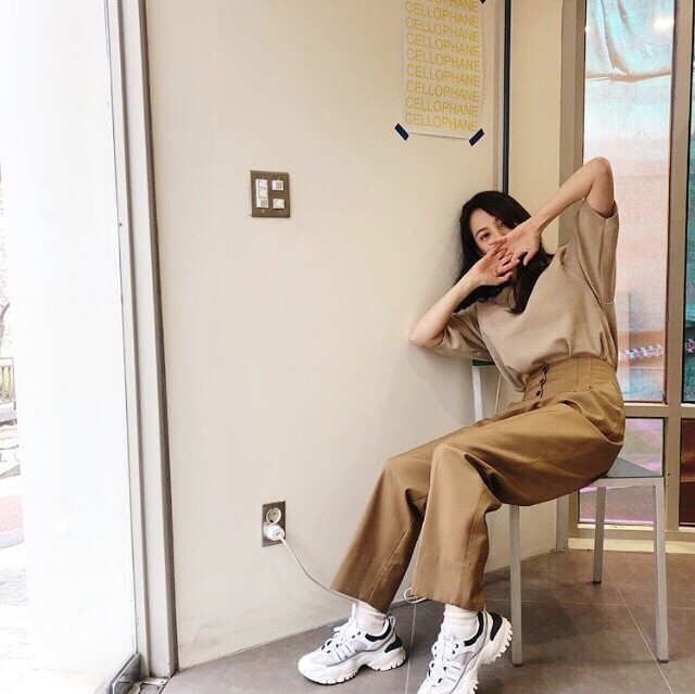 깔끔한 베이지색 팬츠 스타일링이네요.