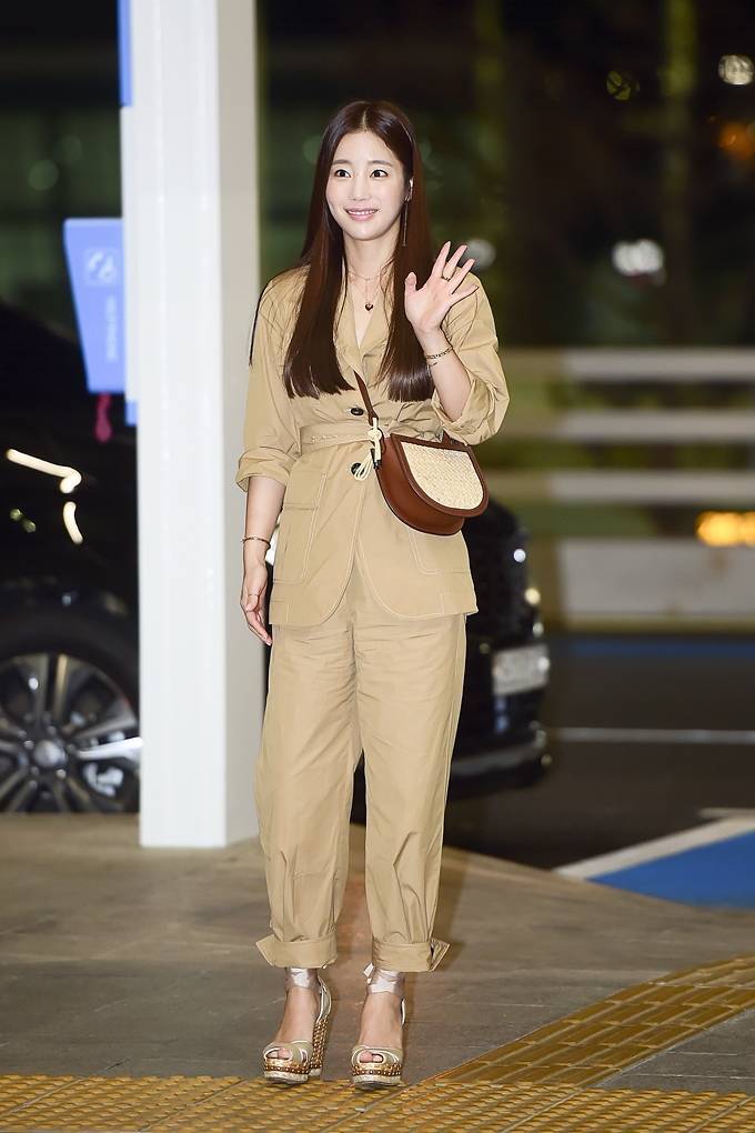 베이지색 팬츠와 베이지색 자켓을 맞춰 입어 수트룩처럼 코디해 준 모습입니다.
