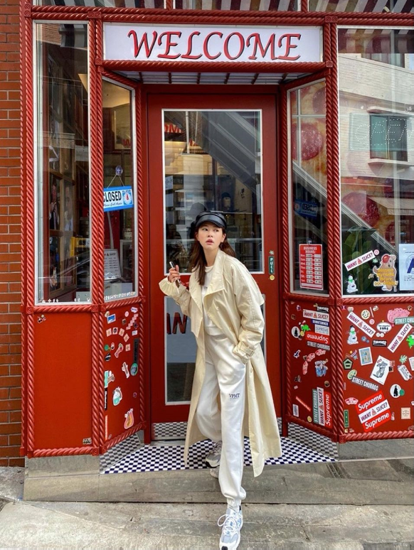 트렌치크트안에 조거팬츠를 매치해서 편하면서도 힙한 스타일로 코디를 해주었네요.