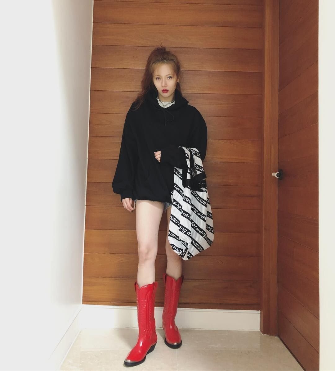 이 날은 다른 웨스턴 부츠를 착용한 현아의 모습인데요.
