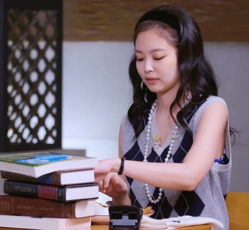 제니의 아가일 체크 패턴이 들어간 조끼입니다.
