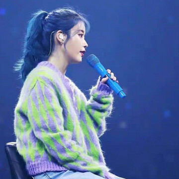 아이유 씨가 입은 아가일 체크가 들어간 스웨터 카디건입니다.