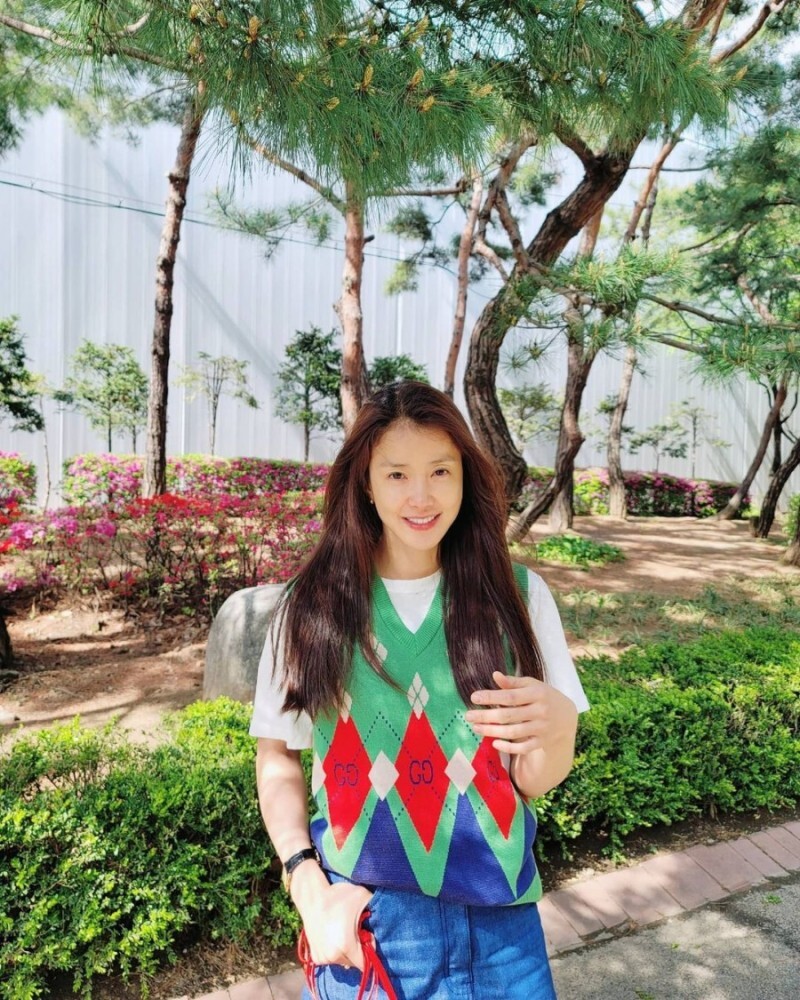 이시영 님이 착용한 아가일 체크 조끼는 구찌 제품입니다.