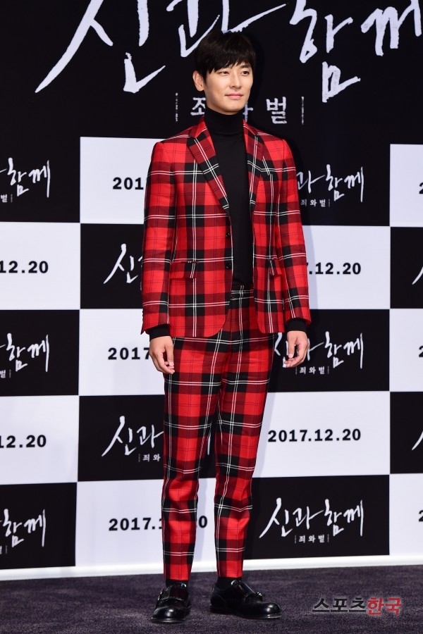 주지훈 씨는 시사회 때 타탄체크로 된 슈트 패션을 선보였는데요.