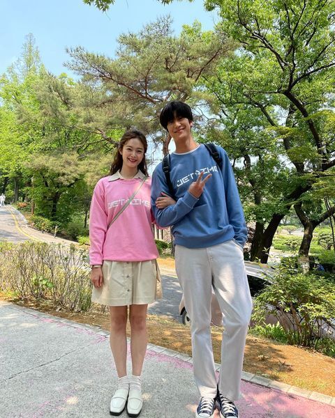 쇼트한 기장의 하의롸 매치해 좀 더 발랄한 모습으로 스타일링 해주었네요.