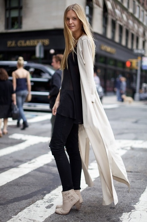롱한 기장의 가디건을 입은 스타들