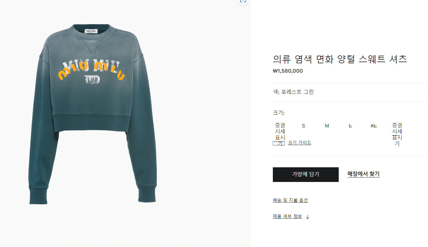 크롭 맨투맨: 미우미우 스웨트 셔츠