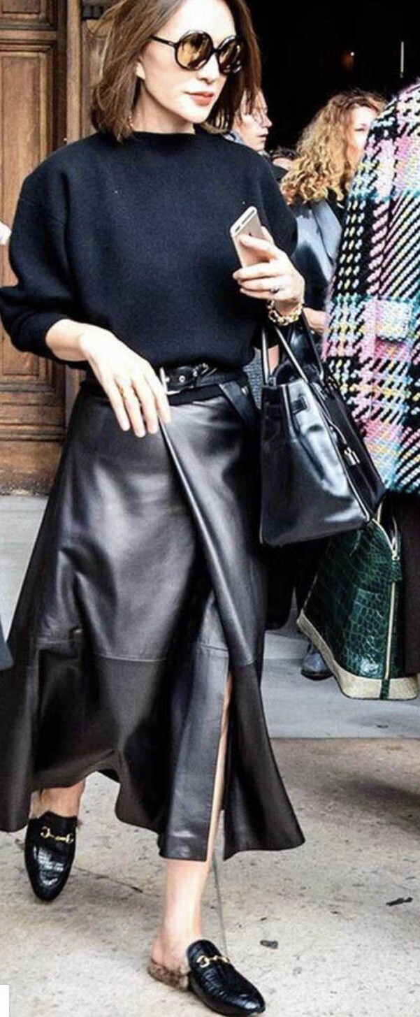연예인들의 가죽스커트를 코디한 모습도 살펴볼까요?