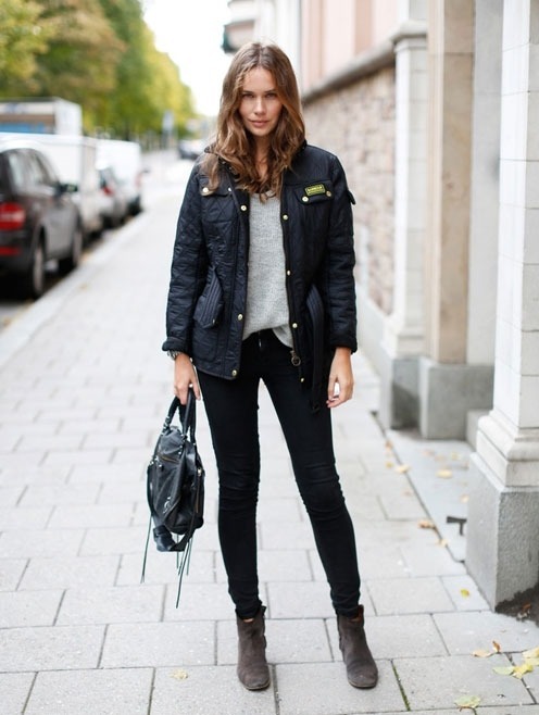 퀼팅 재킷과 롱부츠는 조합이 참 좋은 코디 같아요.