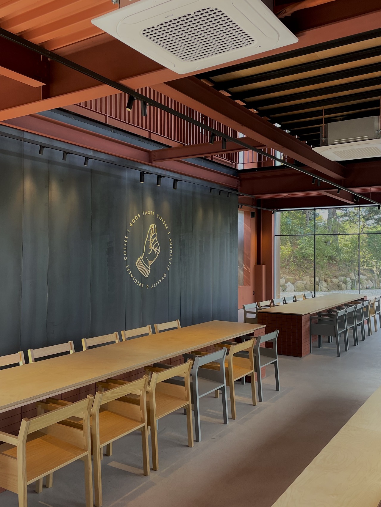 굿 테이스트 커피는 소파 같은 의자는 없고 다 나무로 이런 느낌의 의자여서