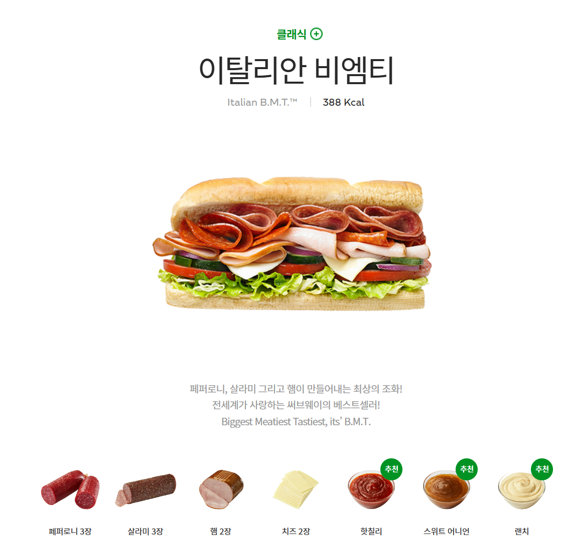 써브웨이 클럽, 이탈리안 비엠티, 스테이크&치즈 많이 드시죠.