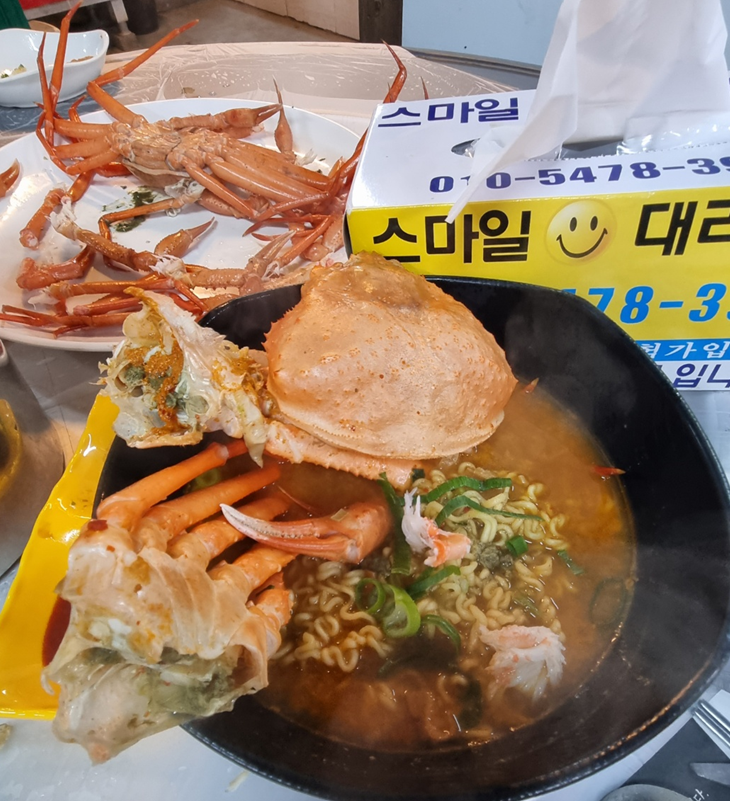 홍게라면 먹으니 좀 내려가서 더 먹을 수 있었어요.