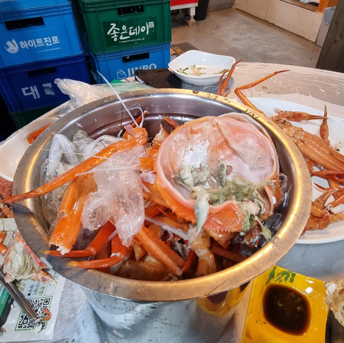 이곳에서 먹으면서 대게 더 달라고