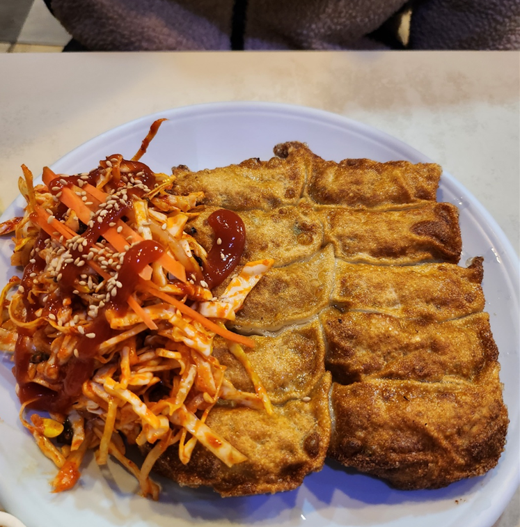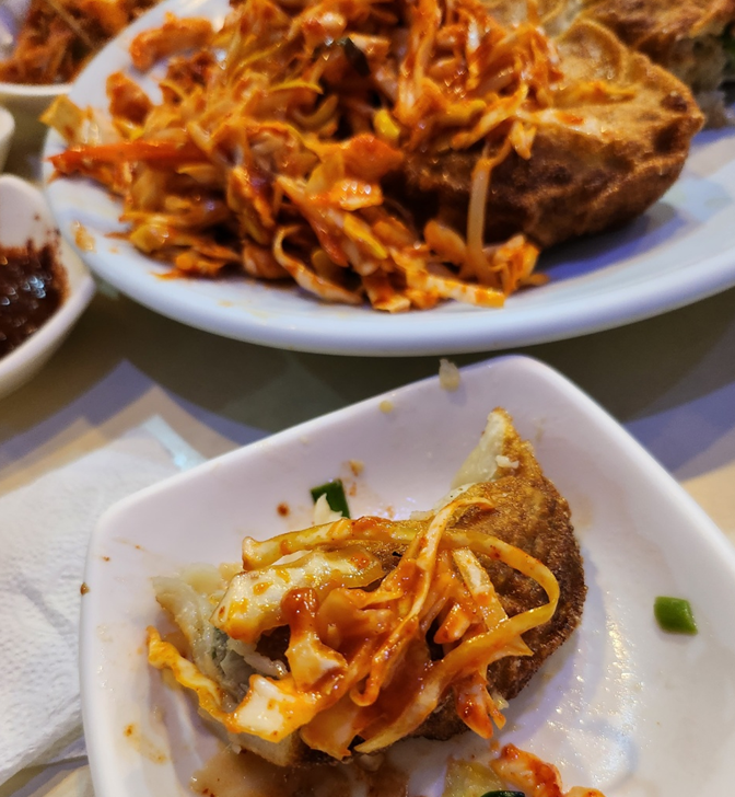 군만두랑 비빔양배추가 조합이 너무 굿이거든요!