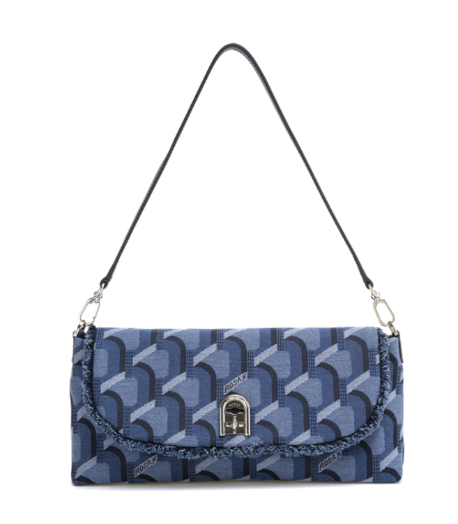 로사케이의 모노그램 디자인과 자카드 직물이 합쳐진 가방입니다.