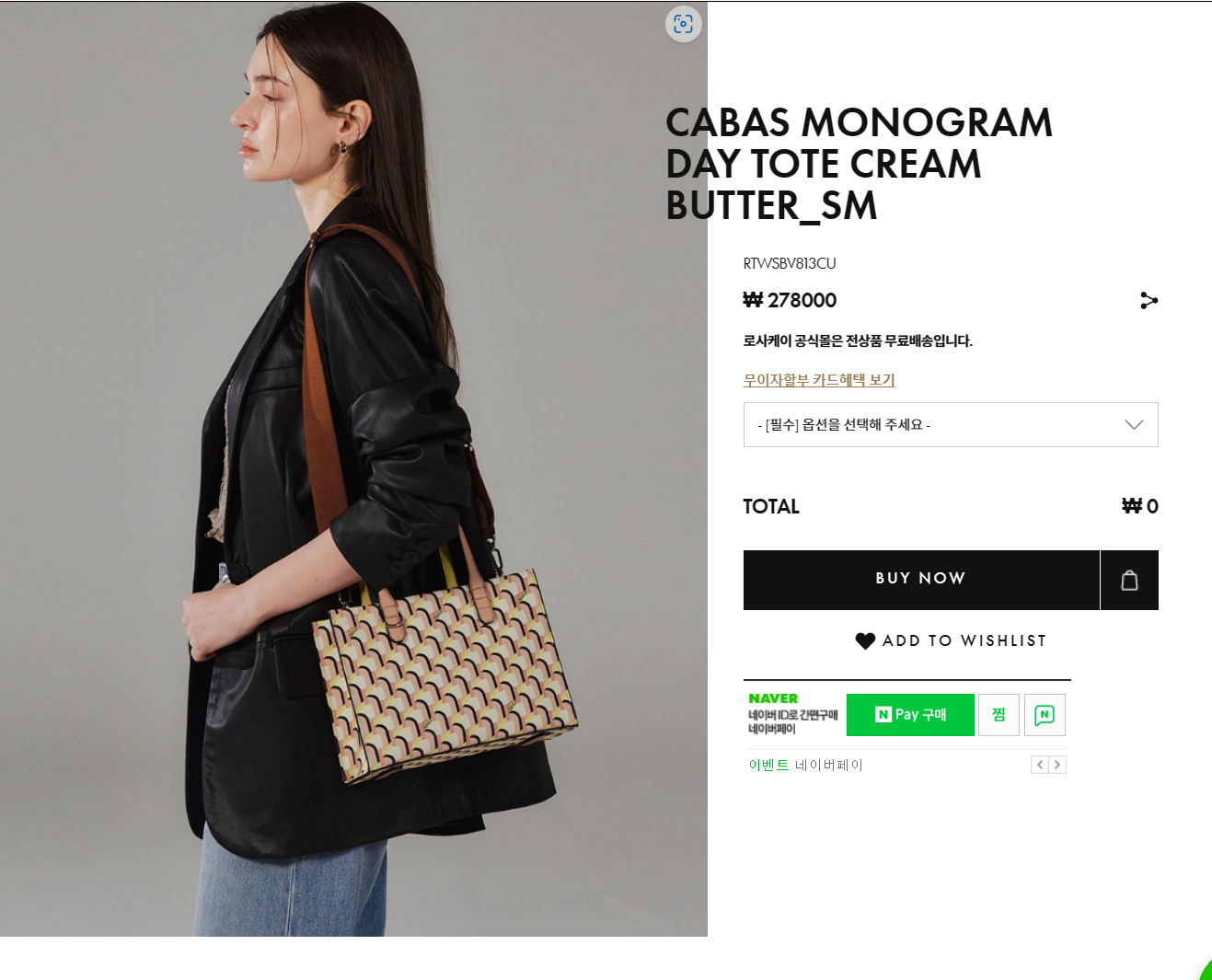 로사케이의 모노그램이 들어간 카바스백은 미니한 사이즈와