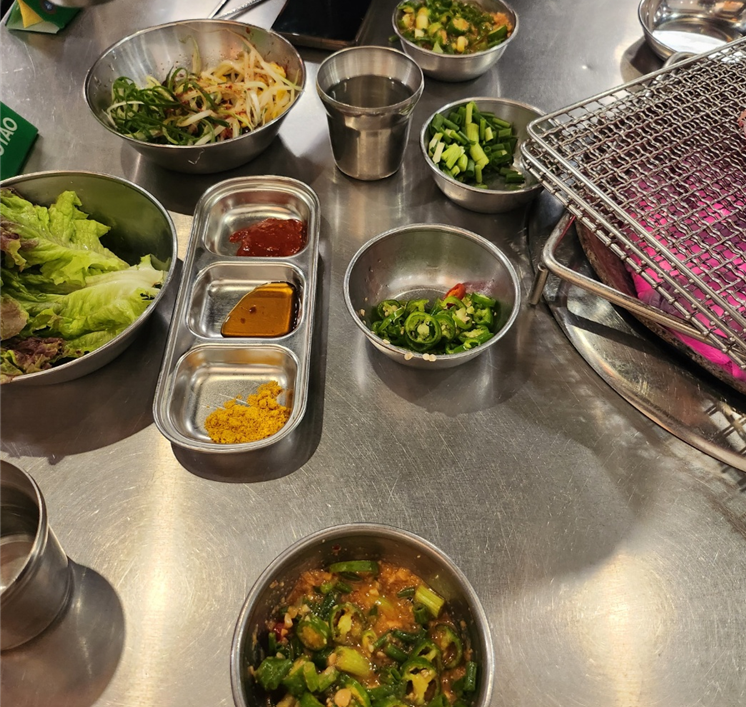 메뉴를 주문하니 기본 반찬들이 세팅됩니다.