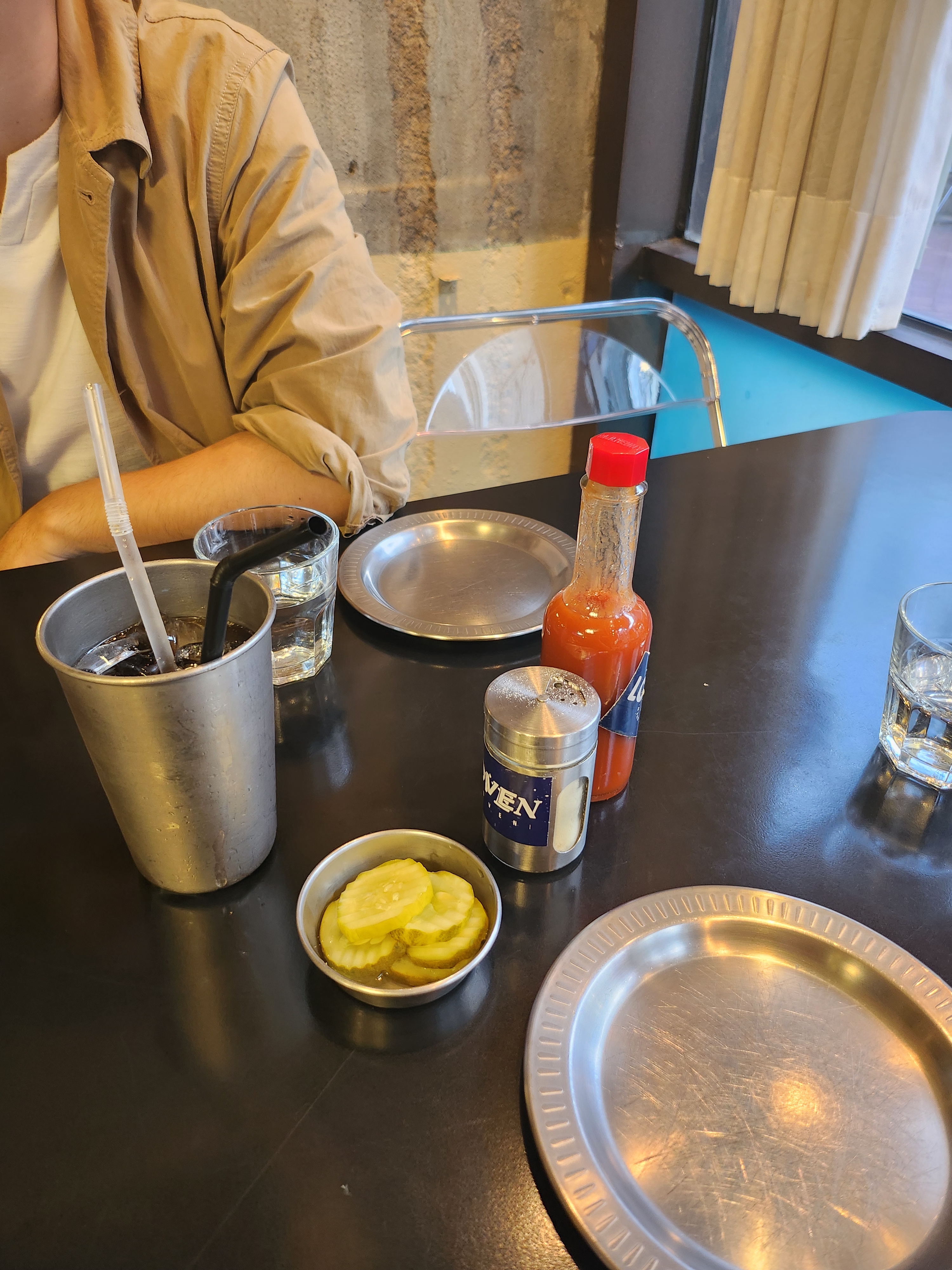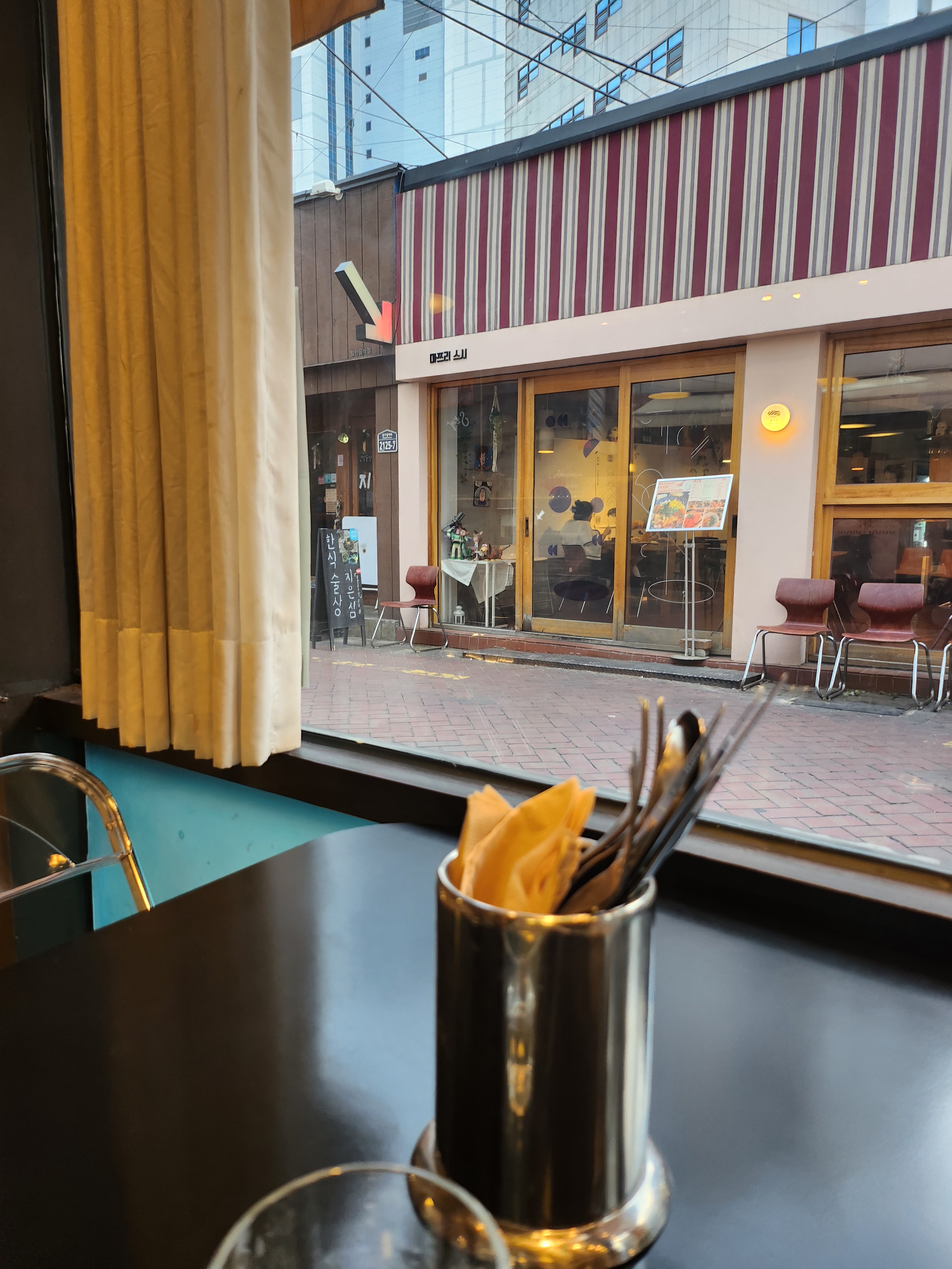 한 10분정도 기다리고 창가자리에 앉았어요.
