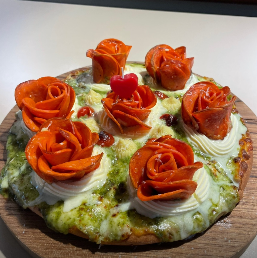 피자 위에는 이렇게 페퍼로니로 만든 꽃이
