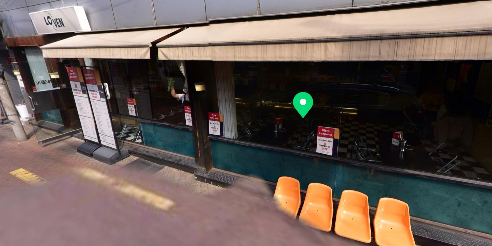 창가자리에 앉아서 지나가는 사람들