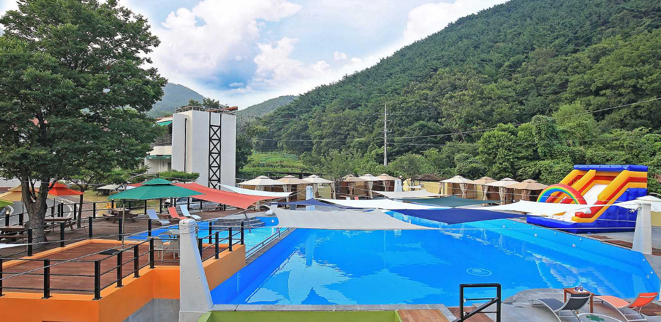 수영장 뒤쪽으로 글램핑장이 있습니다.