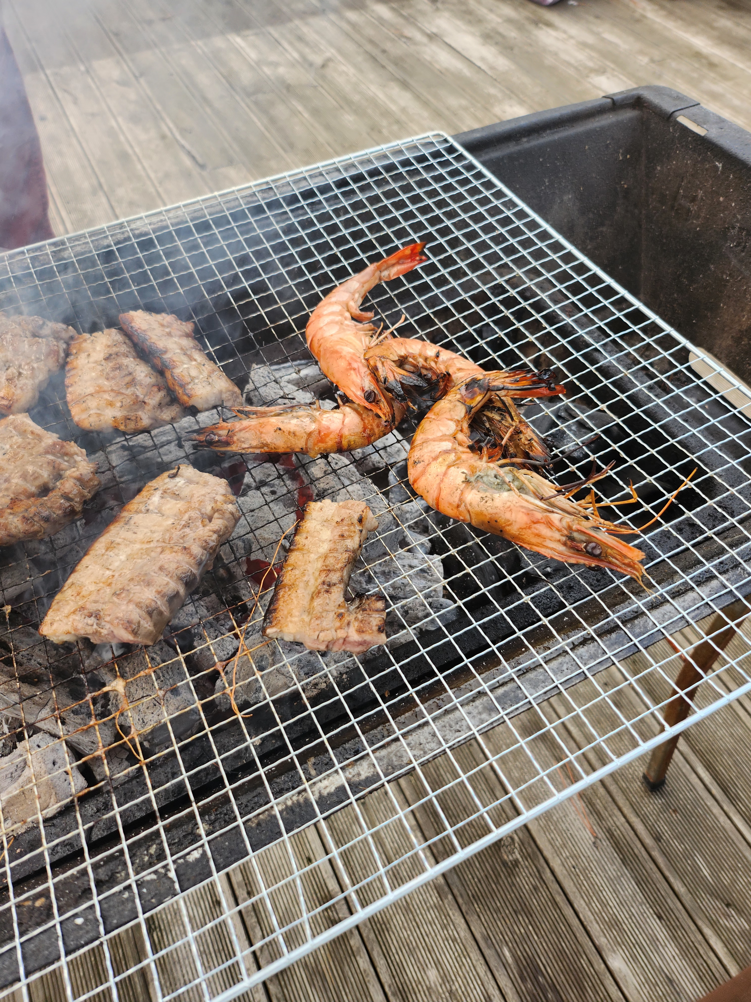 소갈비 1차 끝내고 새우랑 삼겹살 2차 시작 ㅎㅎ