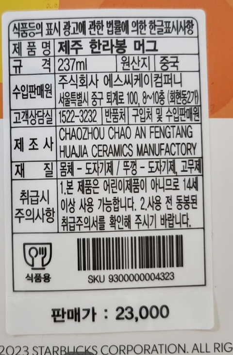 앞 쪽에는 스타벅스 로고가 찍혀 있습니다.
