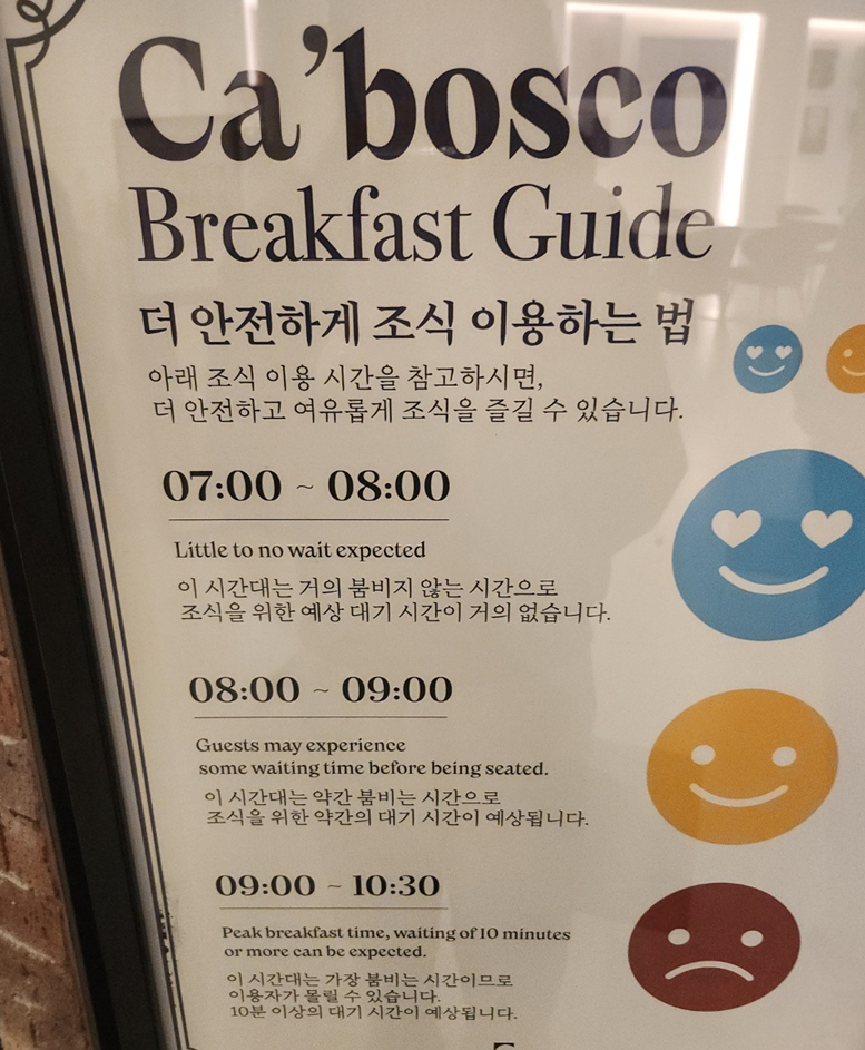 조용히 조식 먹는 게 좋아서 일찍 내려갔더니