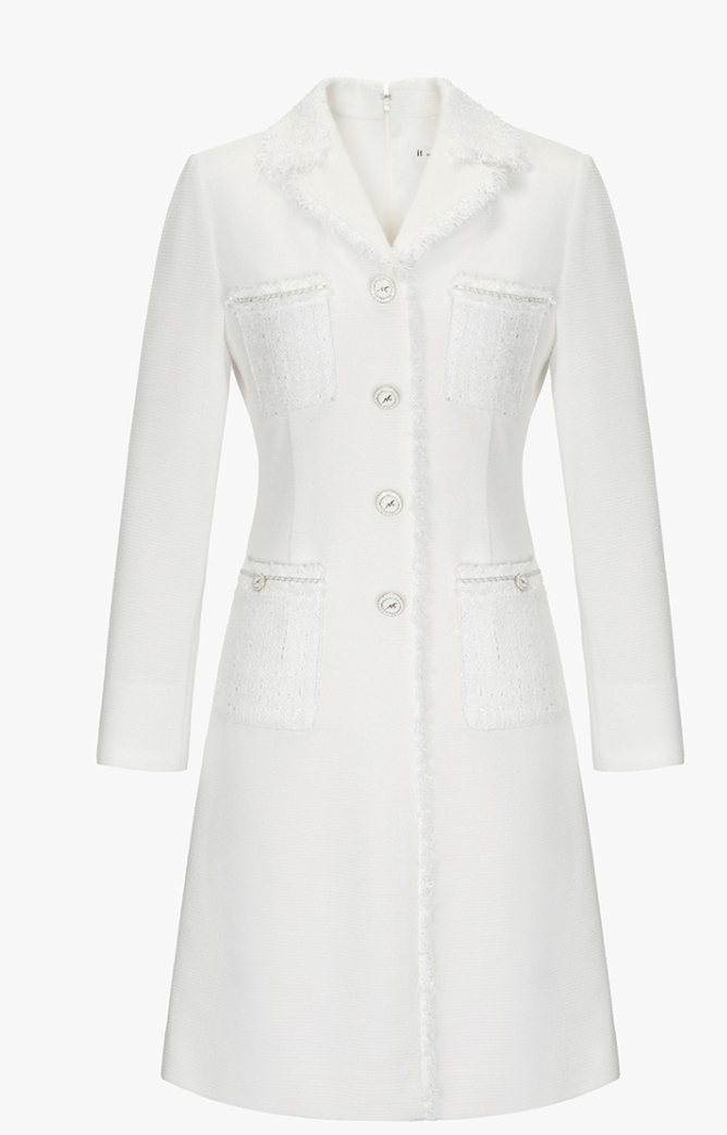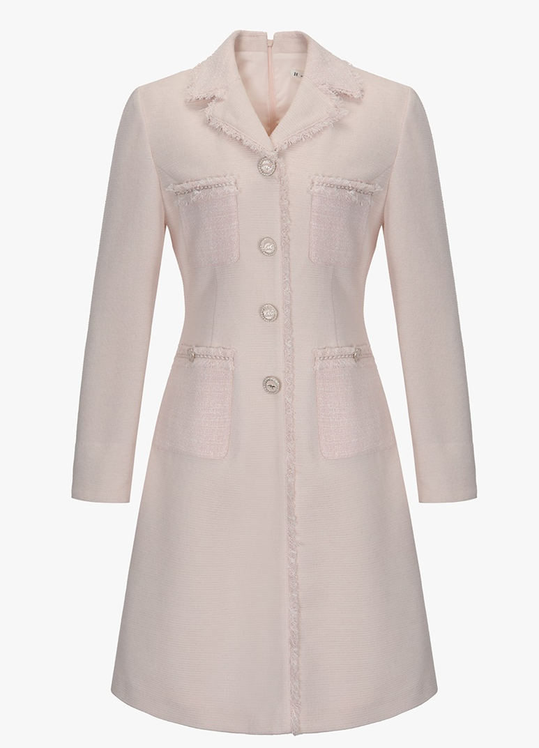 트위드 소재의 A라인 형태의 원피스예요.