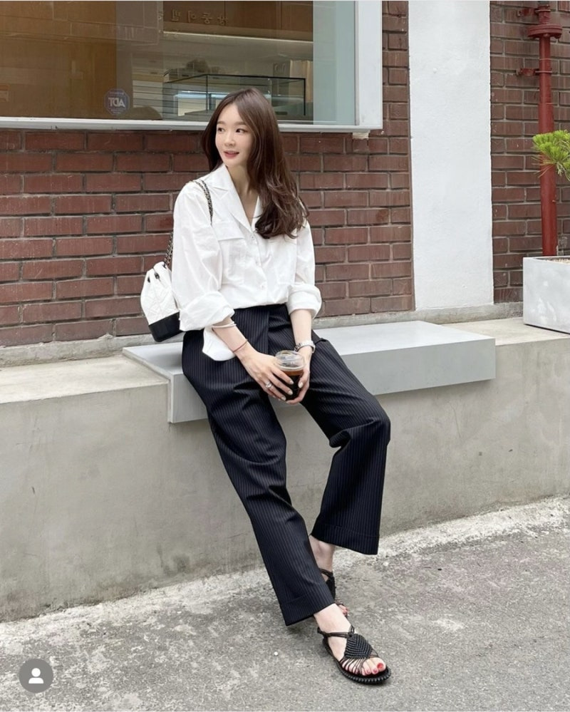 정말 깔끔하고 군더더기 없는 기본 룩인데 저 언니는 왜 저렇게 남달라..