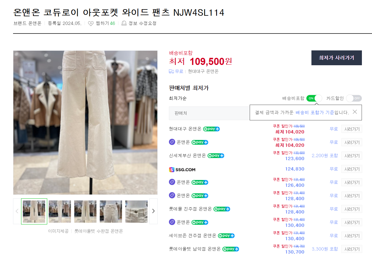 이 제품은 온앤온 제품인데 앞쪽 포켓이 있어서 귀엽게 코디하기 좋을 것 같은 팬츠네요.