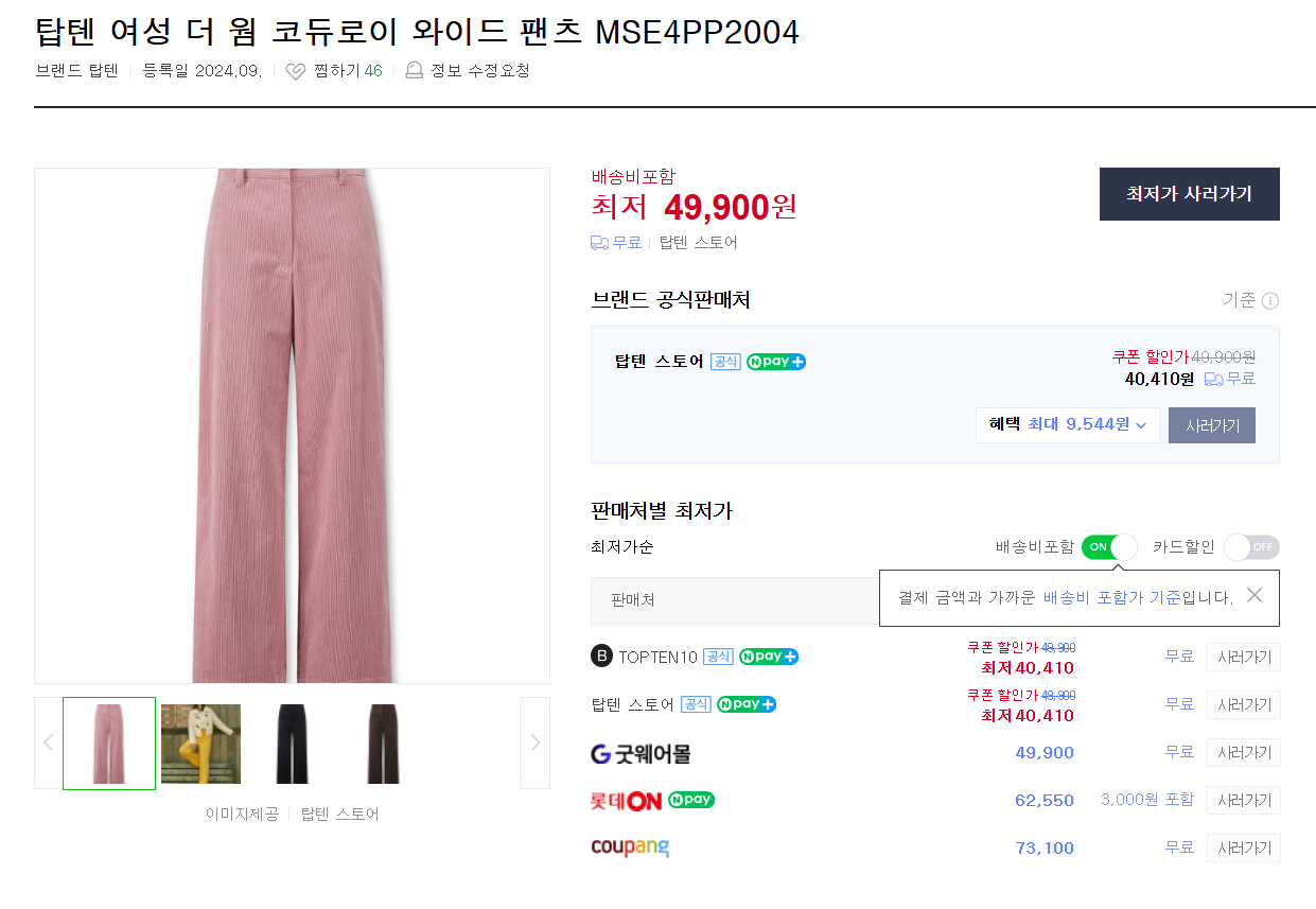 가성비 좋은 브랜드라고 할 수 있는 탑텐에도 트렌드에 맞게 코듀로이 팬츠가 있네요.