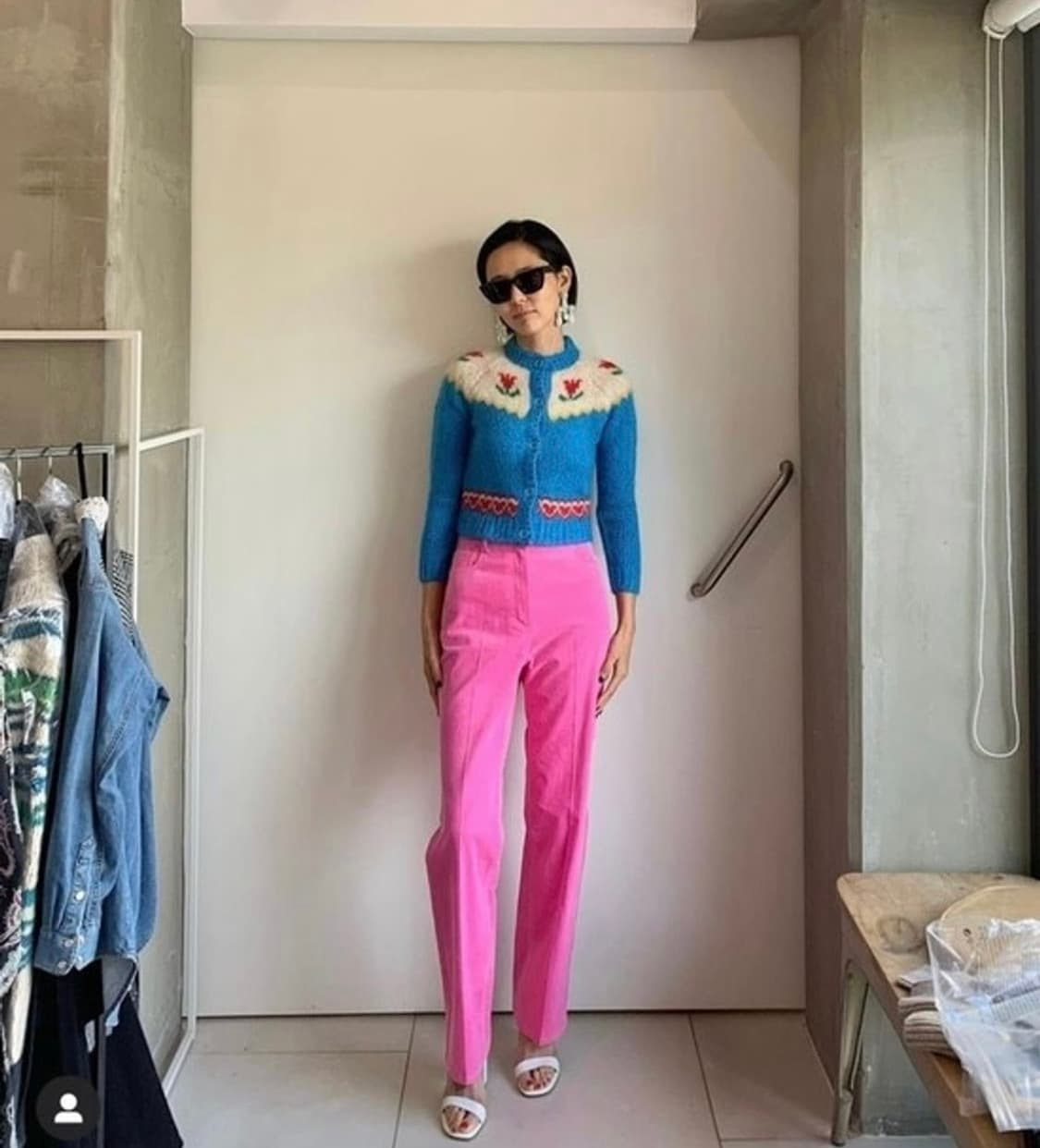 핑크색 코듀로이 팬츠가 과하지 않을까 싶은데