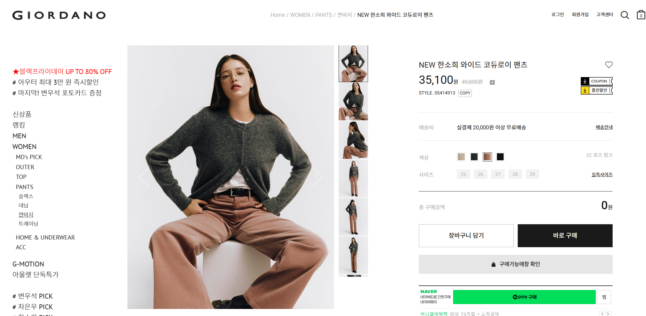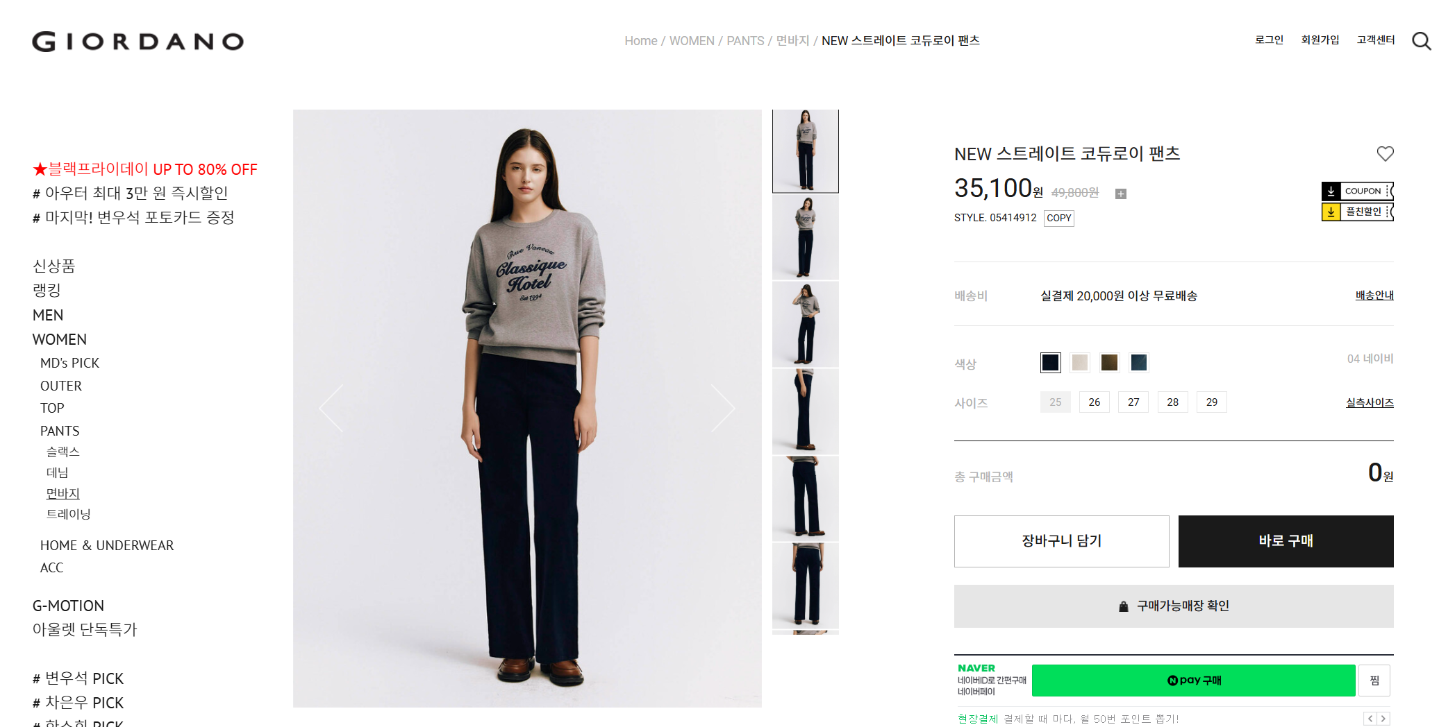 지오다노에서도 가성비 좋은 팬츠들 많아서 코듀로이 팬츠 4가지 컬러웨이가 있네요.