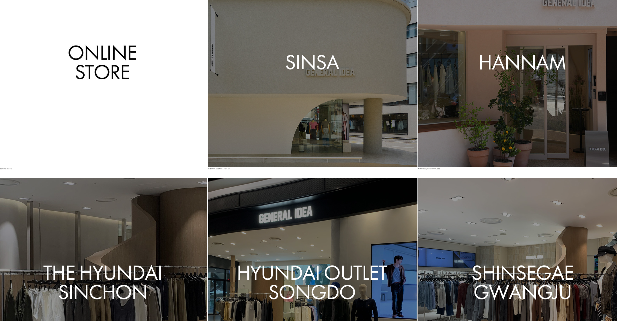 현재 그의 제너럴 아이디어 매장은 온라인, 신사, 하남, 현대백화점 신촌, 현대아웃렛 송도, 신세계 광주점에서 만날 수 있어요.