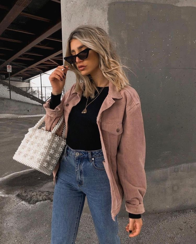 톤다운 된 핑크색상의 코듀로이 자켓인데 디자인이 셔츠형 스타일이라 캐주얼하게 입기도 좋아요.