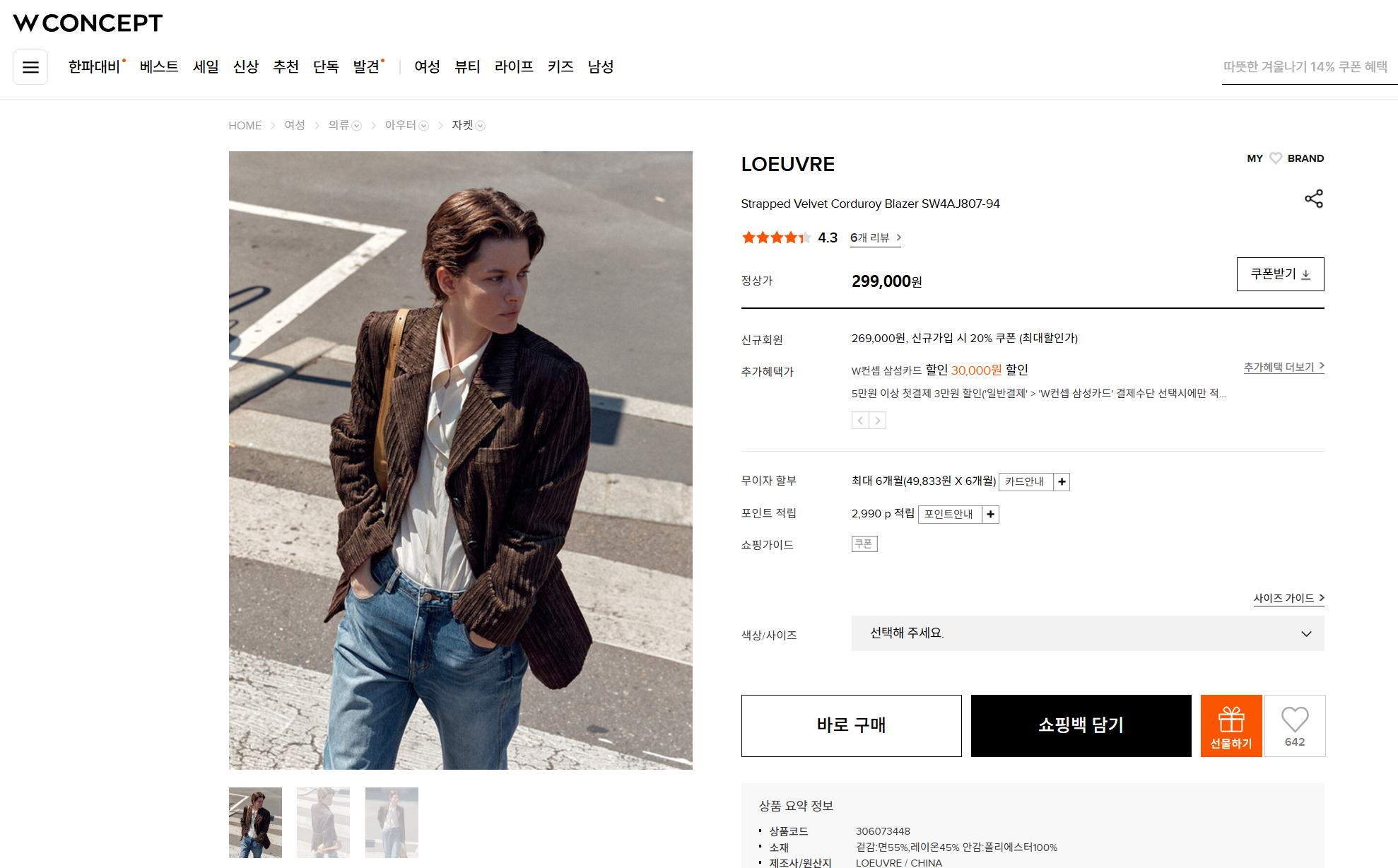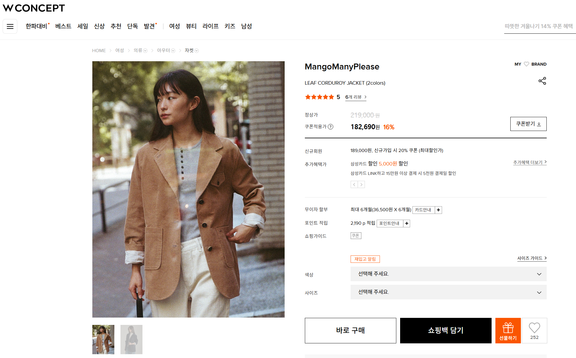 위 제품은 망고매니플리즈의 코듀로이 자켓입니다.