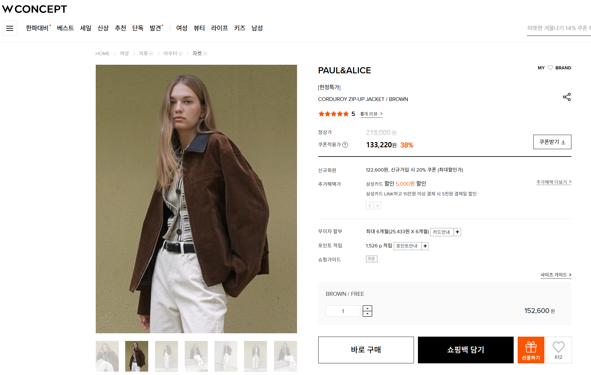 폴앤앨리스의 제품인데 집업형태의 디자인으로 앞의 2가지 제품보다 좀 더 데일리로 입기 좋은 제품이네요.