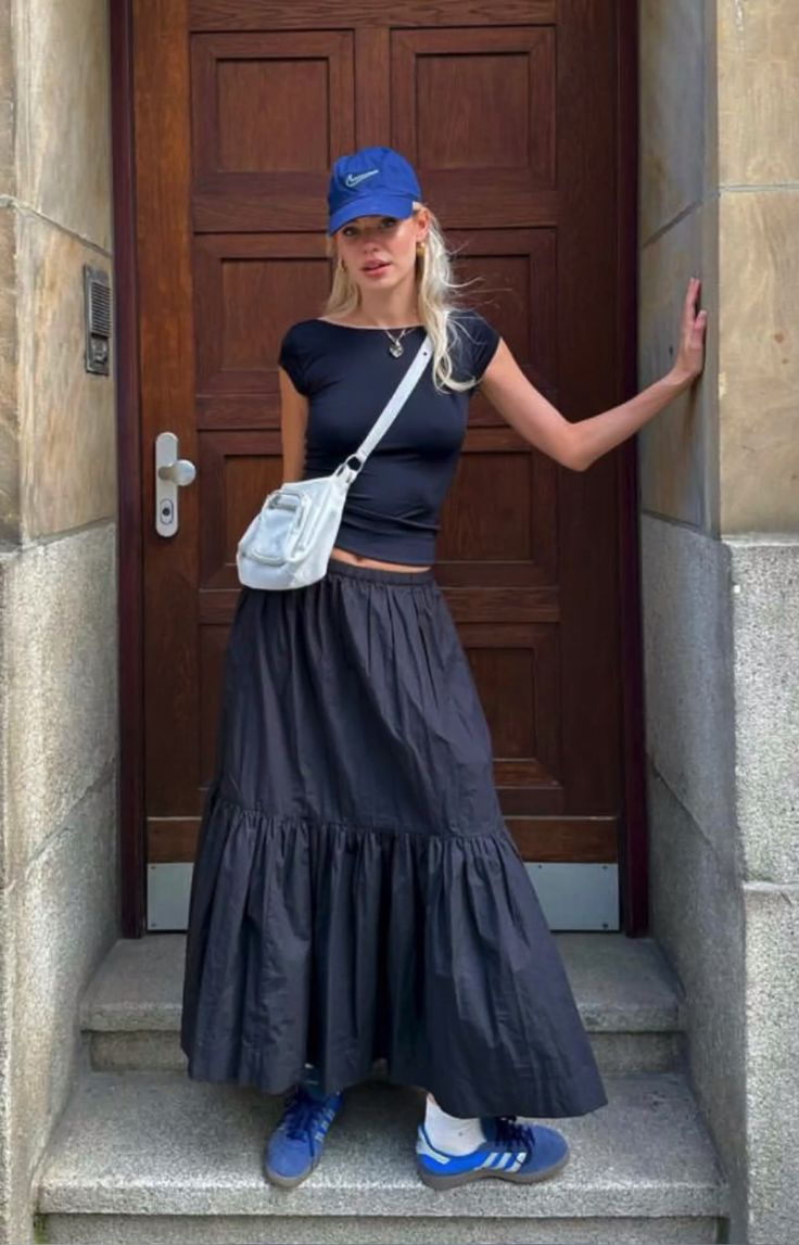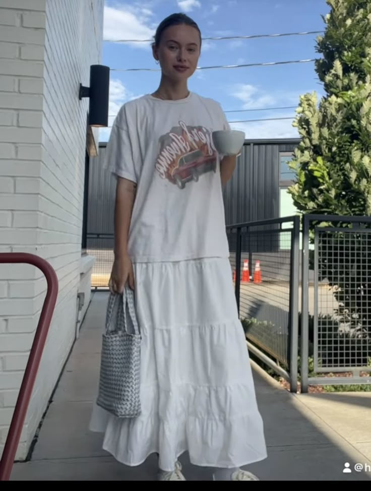 티어드 스커트란 여러 겹의 단이 층층이 겹쳐진 디자인의 스커트에요.