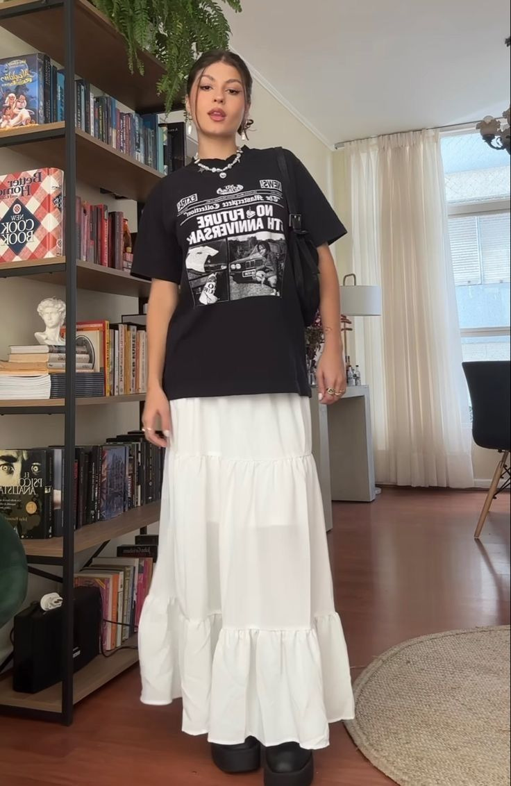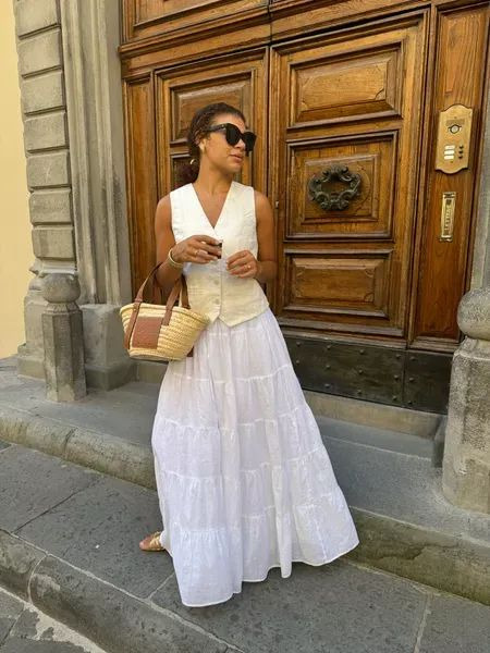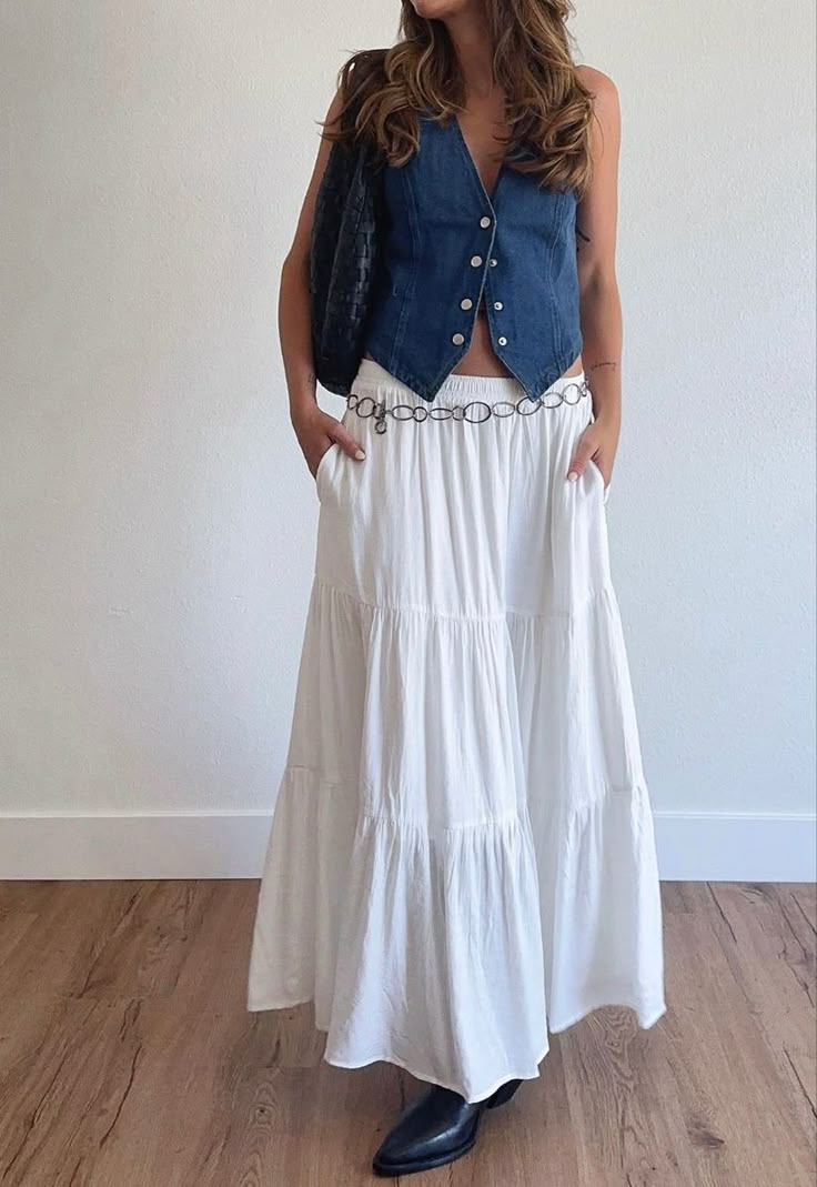 티어드 스커트는 여름에는 쉬폰이나 린넨등의 소재로 입을 수 있고